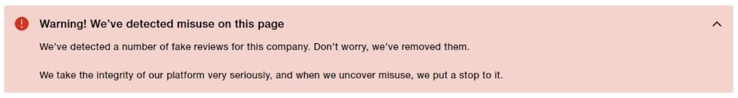 If review platform administrators have any reason to suspect your reviews are illegitimate, they can flag your business for manual action, such as an account or listing suspension, a review removal, or a consumer alert.